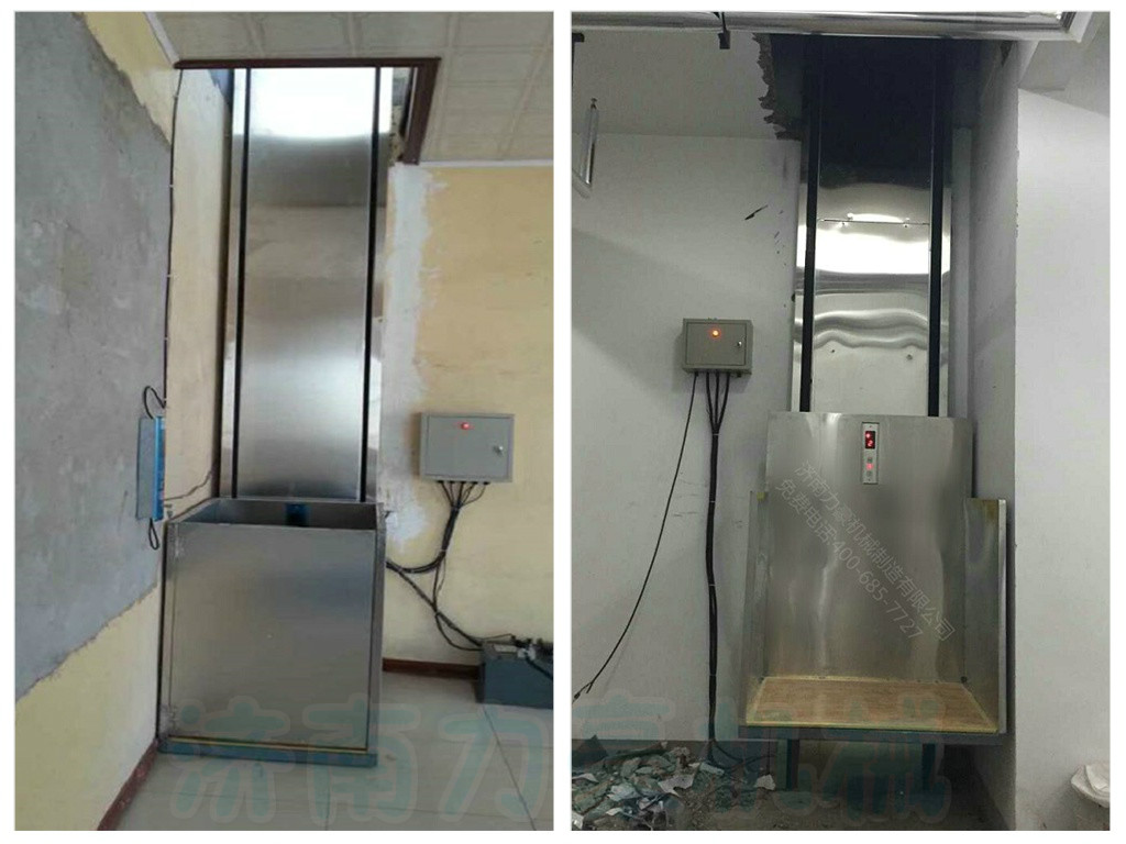 1、小型液壓升降貨梯負荷、載重通過油缸直接作用于基坑,井道強度要求低,磚結構或磚混結構井道即可;