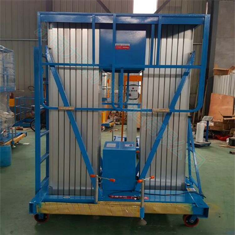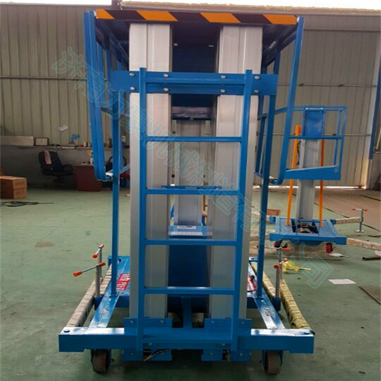 鋁合金升降平臺(tái)簡(jiǎn)介:整體采用高強(qiáng)度鋁型材精制而成由于型材強(qiáng)度高,具有造型美觀、體積小、重量輕、結(jié)構(gòu)緊湊、移動(dòng)方便、升降平臺(tái)平穩(wěn)、操作方便、安全可靠等優(yōu)點(diǎn),令高空作業(yè)更方便快捷,能夠快速、慢速行走,可調(diào)速,是現(xiàn)代企業(yè)高效安全生產(chǎn)之理想高空作業(yè)設(shè)備。主要產(chǎn)品分為單立柱鋁合金升降平臺(tái),雙立柱鋁合金升降平臺(tái),三立柱鋁合金升降平臺(tái)、四立柱鋁合金升降平臺(tái),放倒式鋁合金升降平臺(tái),多柱鋁合金升降舞臺(tái)。特點(diǎn):采用高強(qiáng)度優(yōu)質(zhì)鋁合金材料,具有造型美觀、體積小、重量輕、升降平穩(wěn)、安全可靠等優(yōu)點(diǎn)。它輕盈的外觀,能在極小的空間內(nèi)發(fā)揮最高的舉升能力。立柱升降系統(tǒng),具有載量大,穩(wěn)固性強(qiáng),平臺(tái)面積大,推行方便等特點(diǎn)。